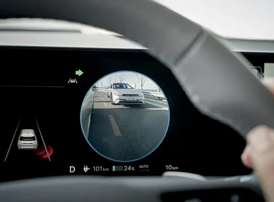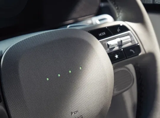 Equipped with cutting-edge technology for intelligent driving, the IONIQ 5’s regenerative braking system charges the battery while driving by using the electric motor to slow the vehicle. You can control the level of energy that the system regenerates and stores in the battery by adjusting the level of regenerative braking with the steering-wheel-mounted paddle shifters. The higher the level, the more the car slows and charges the battery when you take your foot off the accelerator.