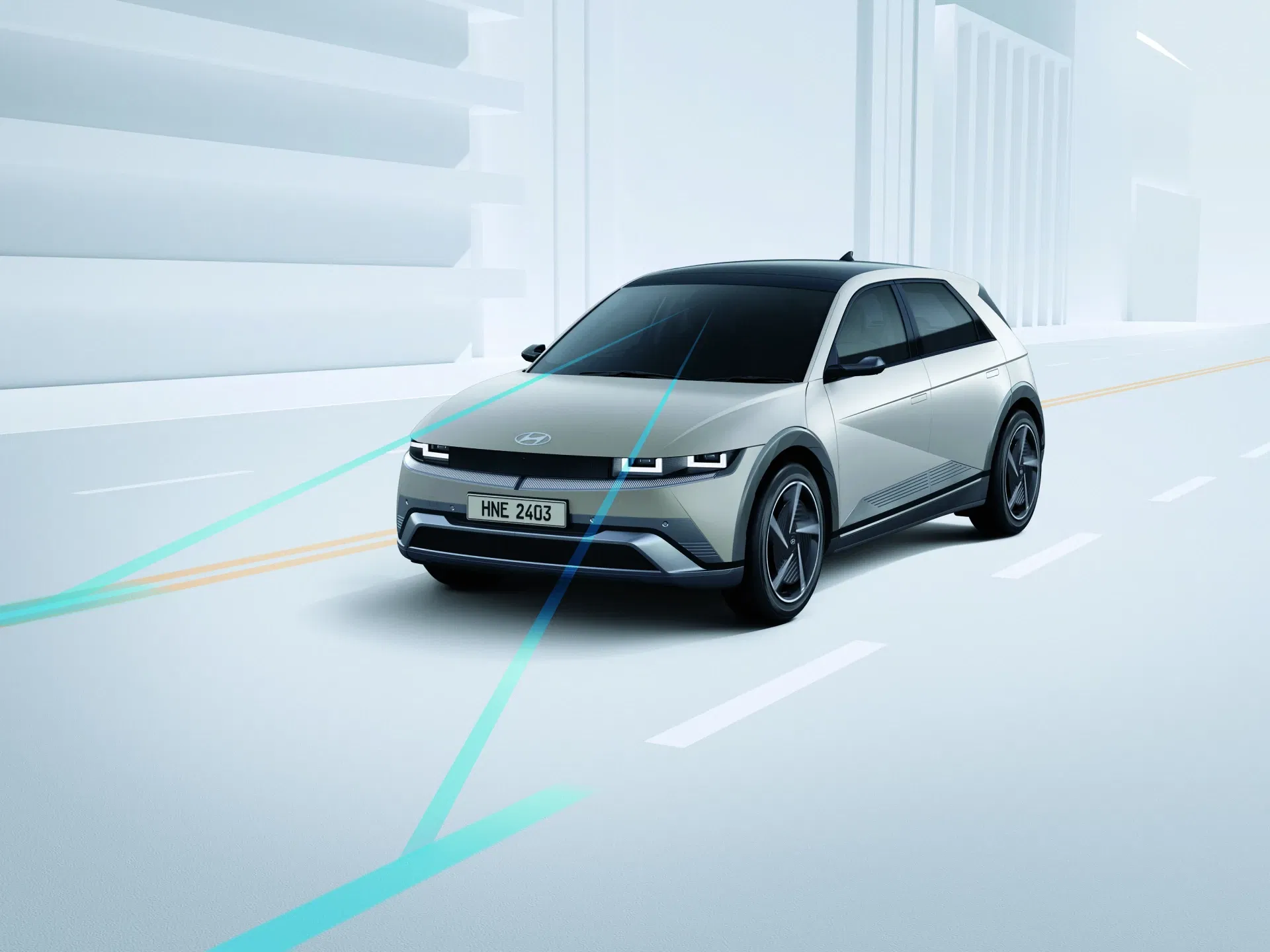 The E-GMP platform can be specified with either single-motor rear-wheel drive or dual-motor all-wheel drive configurations. Thanks to the low centre of gravity, handling is stable and assured in both variants.